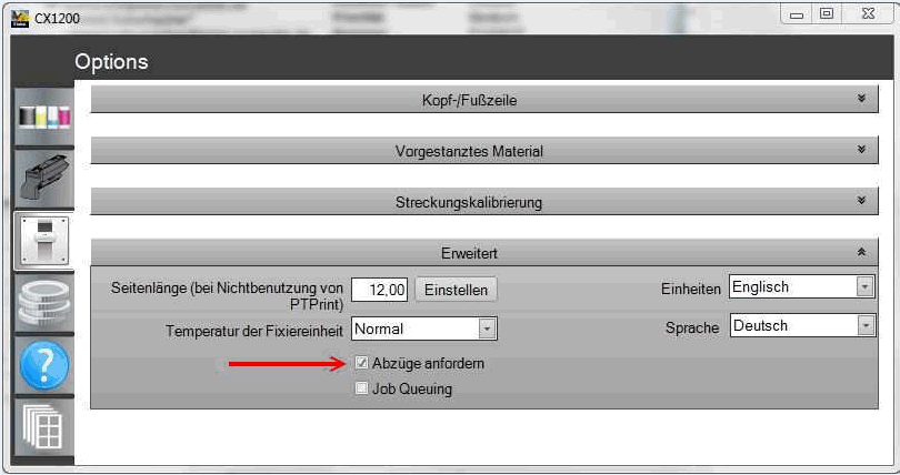 Mit dem CX1200e kann man bis zu 300 Meter lange Rollen Papier ausdrucken. Damit in der Zwischenzeit der Tonter nicht leer geht, empfiehlt sich den Proof Druck vor dem eigentlichen Druck zu machen.